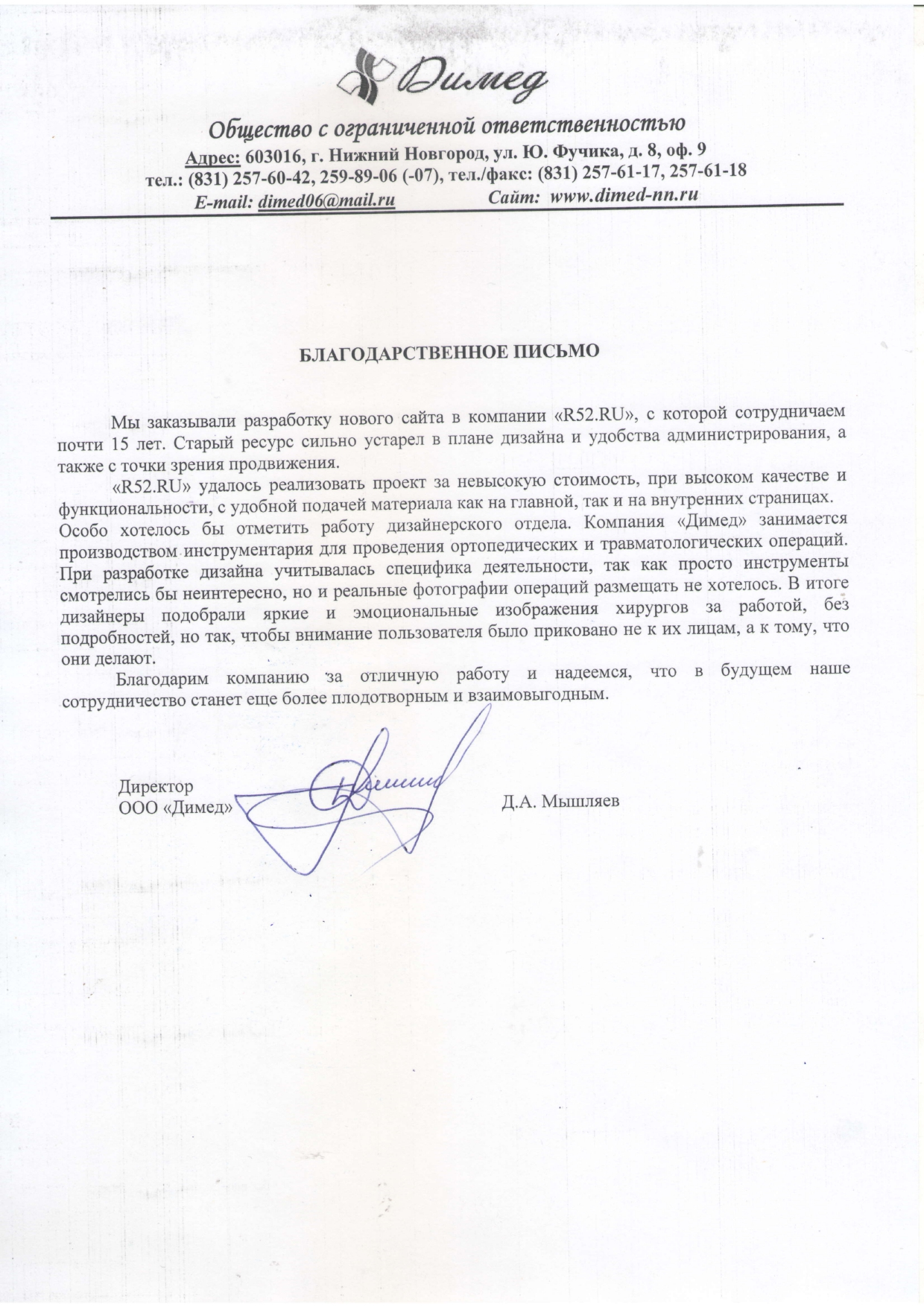 Искренне благодарим команду «Р52.РУ» за профессионализм, оперативность плодотворное креативное сотрудничество!